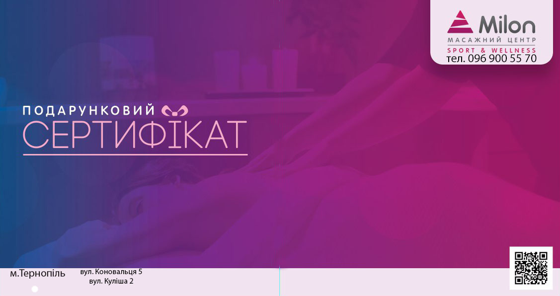 У нас ви можете придбати подарункові сертифікати на наші послуги та потішити ними ваших близьких та знайомих людей, даруючи їм оздоровлення та релаксацію